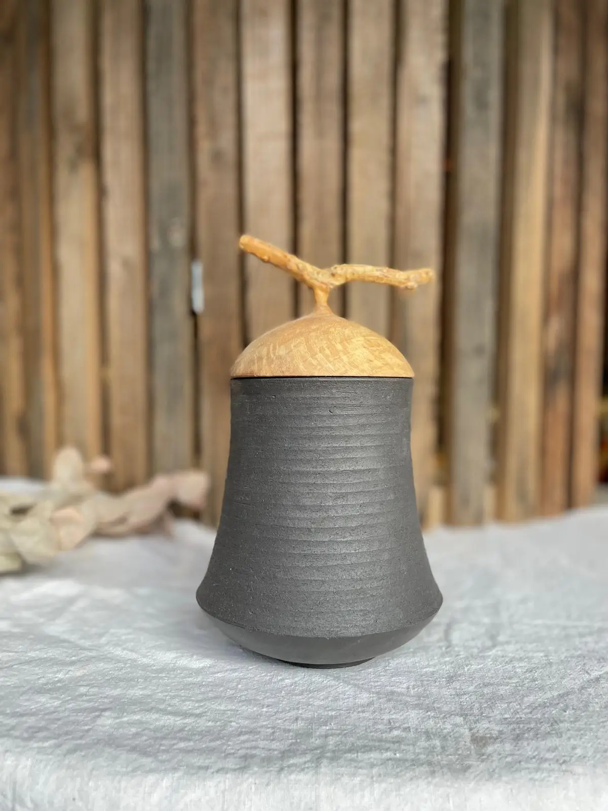 Ainsi nous vous proposons des vases et des coffrets, créés à partir de nos terres et associés avec des essences de bois en fonction de l’inspiration de nos artisans.